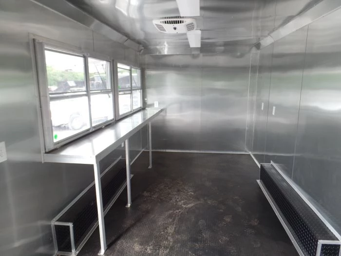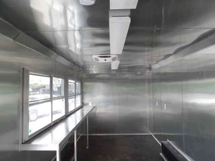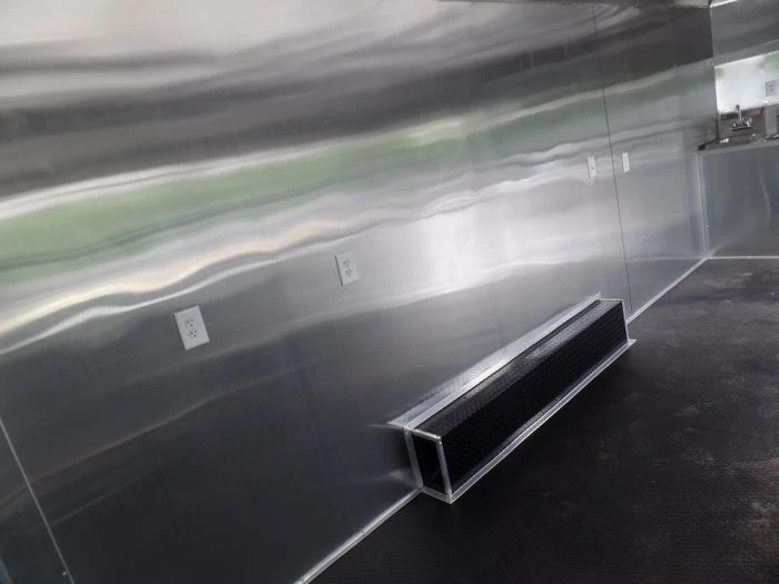 - The aluminum finish on the walls and ceiling