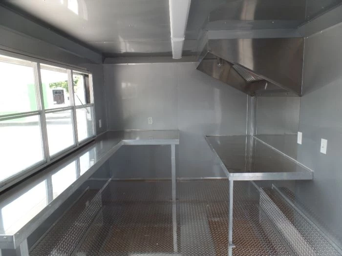 - Aluminum mill walls and ceiling with stainless steel behind the hood