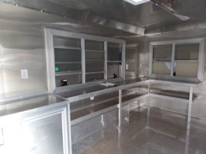 - Aluminum mill walls and ceiling with stainless behind the hood