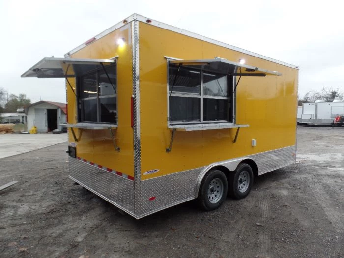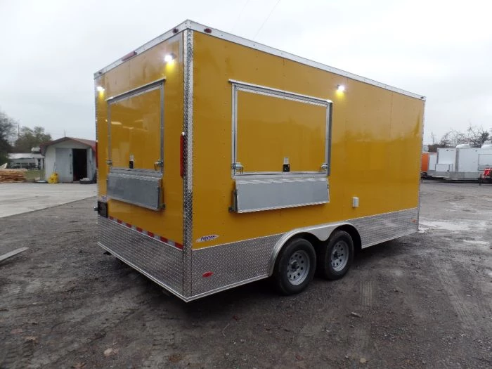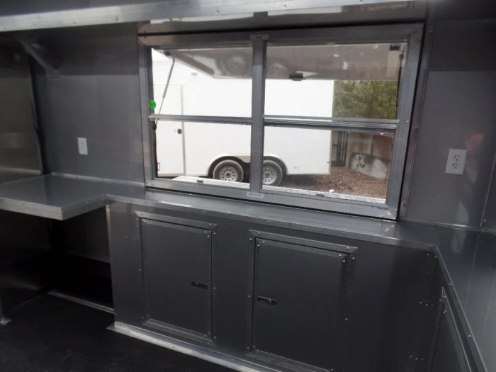 - (2)5ft Concession windows made with glass and screens and flip up counters on the outside – same key to lock both