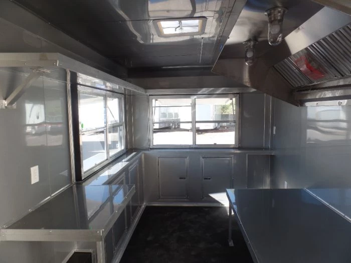 - (2)5ft Concession windows made with glass and screens and flip up counters on the outside – same key to lock both