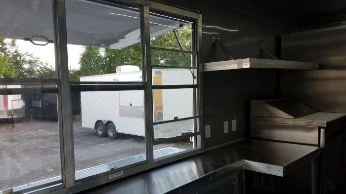 - 48″ x 6′ Concession window with glass and screens with flip-up counter outside