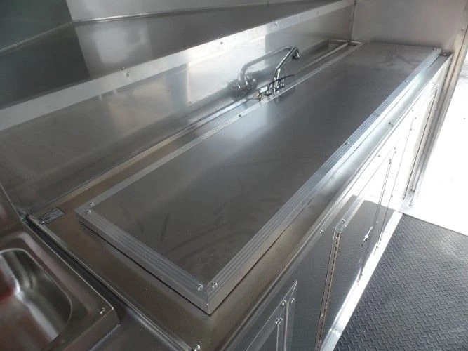 - 7′ Area made to hold 5,200 lb pizza oven with flip up doors all around to start at top of pizza deck
