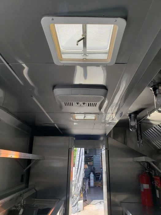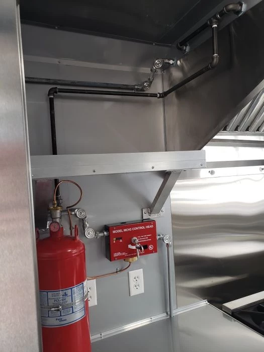 - Aluminum Mill Finish on Walls and Ceiling, Stainless Steel Behind the Hood