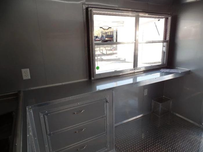 - (2) 5ft Concession window with glass and screens and flip up counter outside