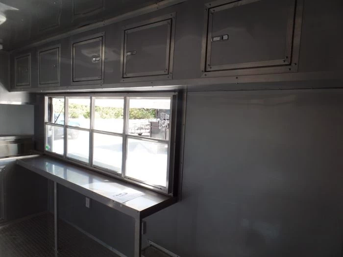 - 8′ Concession window with glass and screens with a flip up counter outside