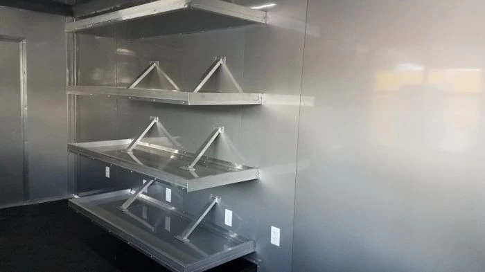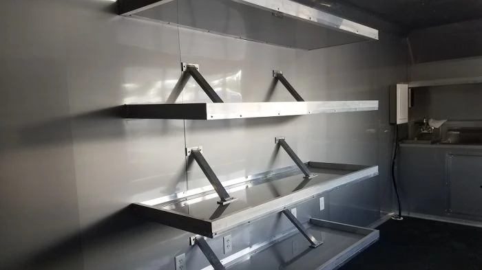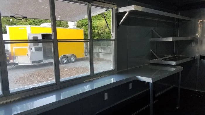- 48″ x 8′ Concession window with glass and screens with flip up counter outside
