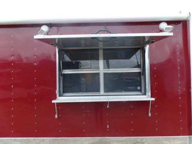 - 5ft Concession window with glass and screens with a flip up counter outside