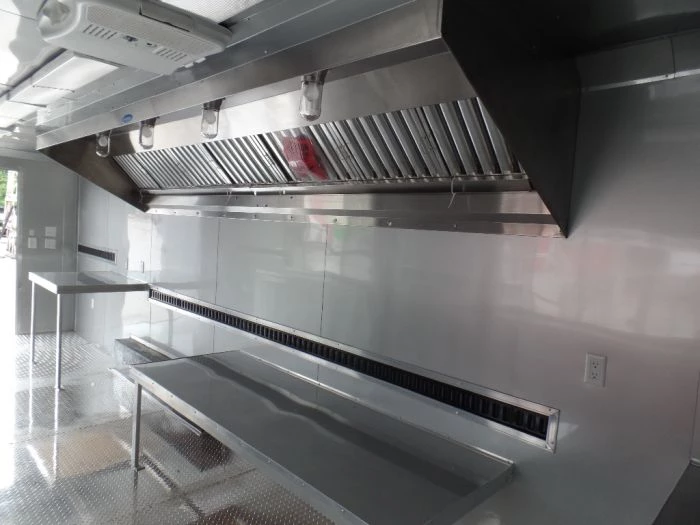 - 13′ Commercial grease hood with (1) row of e-track on wall under hood to be 30” off floor