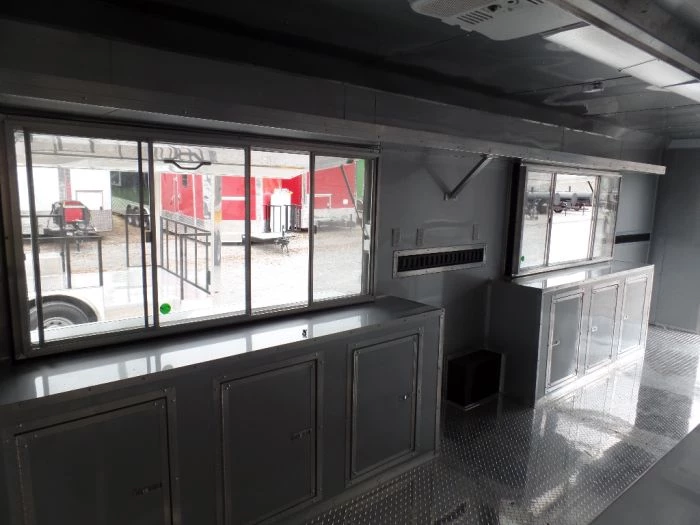 - (2) 6′ Concession windows with glass and screens to SLIDE SIDE TO SIDE (marquee style flip up doors)
