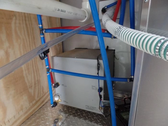 - Sink package with 30 gal. fresh, 50 gal. waste, Propane on demand water heater