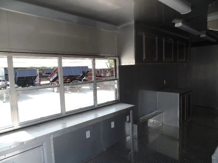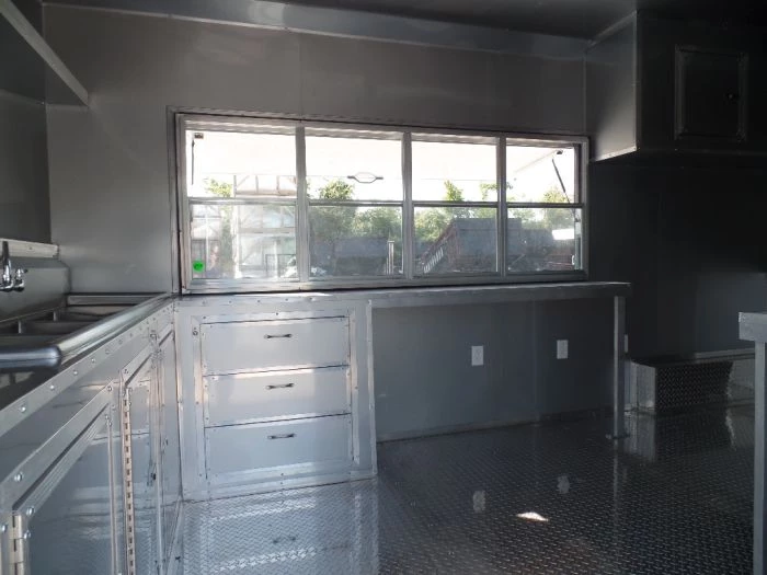 - 8′ Concession window with sliding glass and screens and flip up counter outside