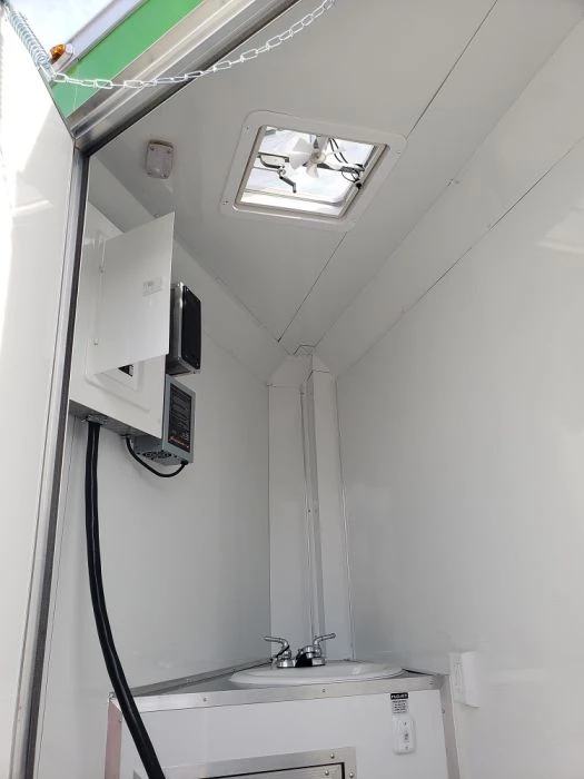 - Restroom with Toilet, Hand Sink, Roof Vent, Light, and It’s Own Water Supply
