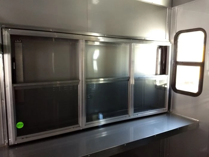 - 6 ft Concession window with glass and screens and flip up counter outside