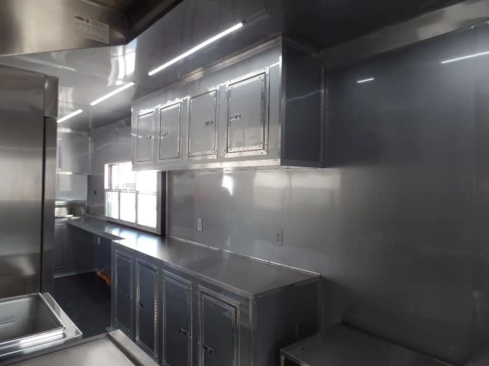 - Aluminum mill walls and ceiling with stainless behind the hood