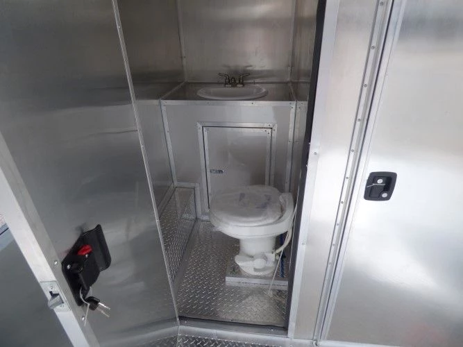 - Restroom with toilet, sink, light, roof vent and toilet to have its own fresh and waste water supply
