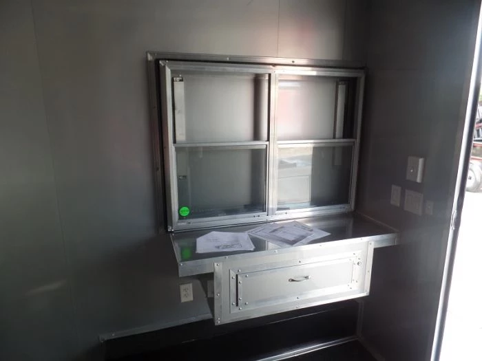 - 4′ Concession windows with glass and screens with flip up counter outsideÂ