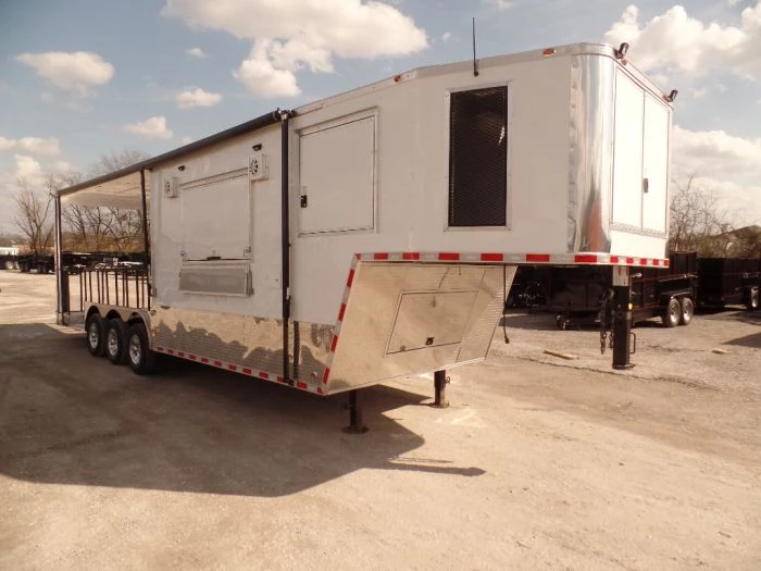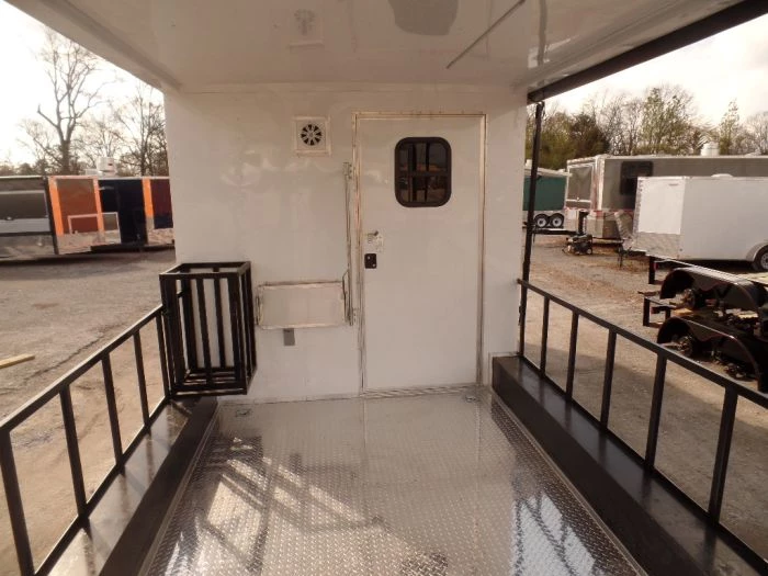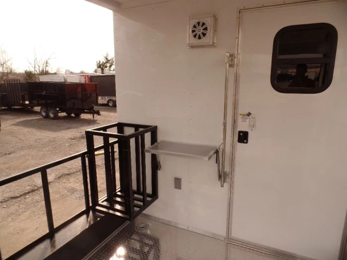 - 8 ft Riser 4 ft generator compartment to have expanded metal flooring, expanded metal sides, (3) roof vents, and led light 4 ft storage compartment with (2) 36″ access doors and led lights