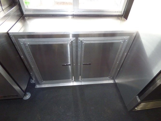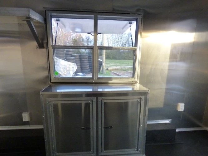 - 4′ Concession window with glass and screens with flip up counter outside