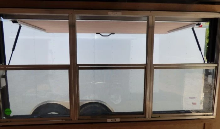 - 3′ x 6′ flip up window with glass (3 glass windows)