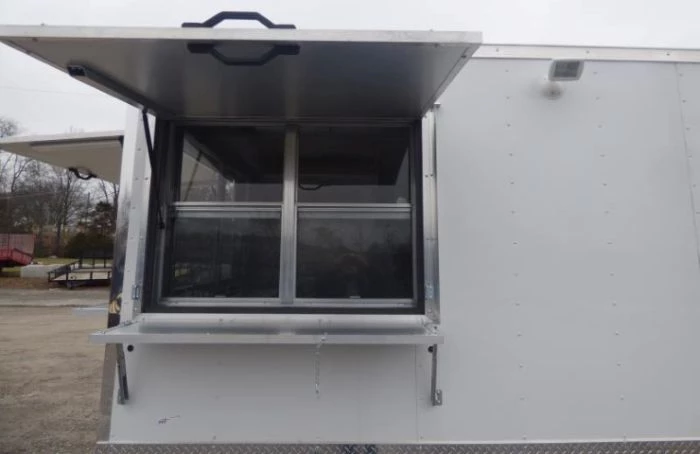 - 4′ Concession Window with Glass and Screens with Flip Up Counter Outside (Pass. Side)