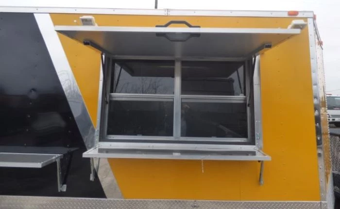 - 5′ Concession Window with Glass and Screens with Flip Up Counter Outside