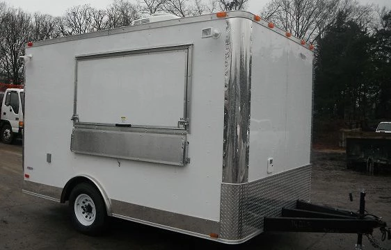 - 8.5′ X 12′ White Concession Trailer with Removable Tongue