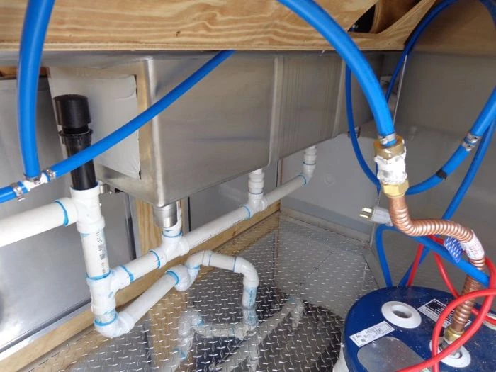 - sink package with 30 gal. fresh, 50 gal. waste, 6 gal. water heater to supply hand wash sink