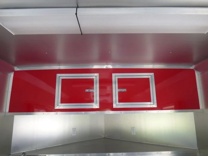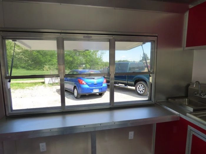 - (2) 6′ concession windows with glass and screens with flip up counters outside