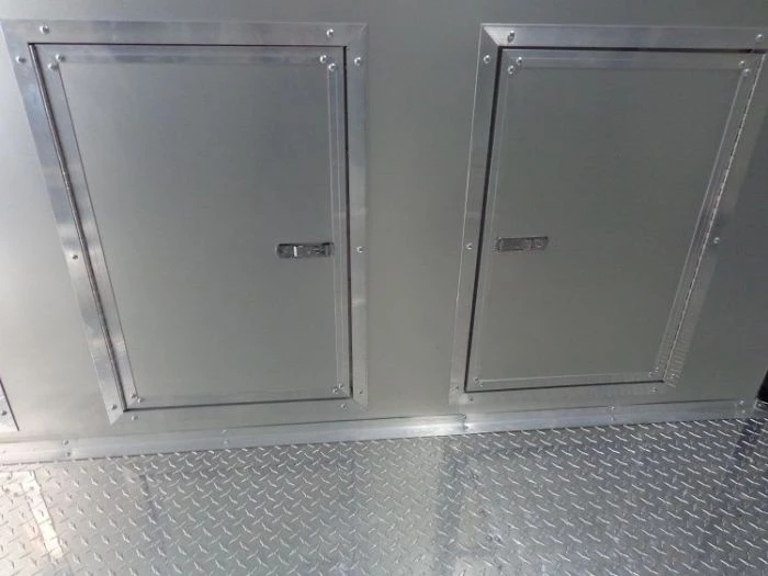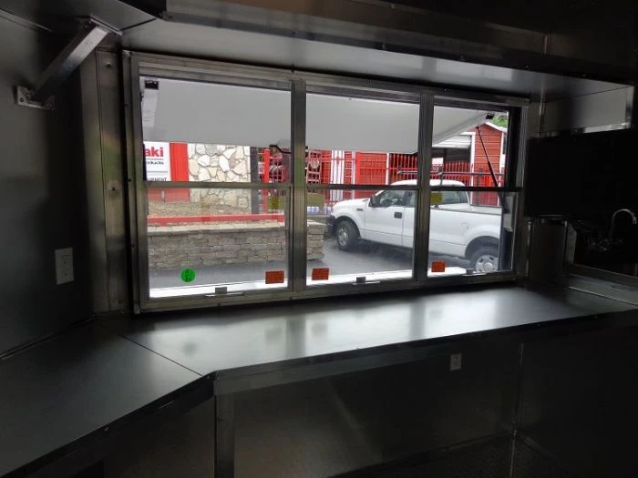 - (2) 6′ concession windows with glass and screens flip up counters outside of windows