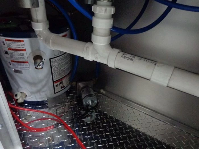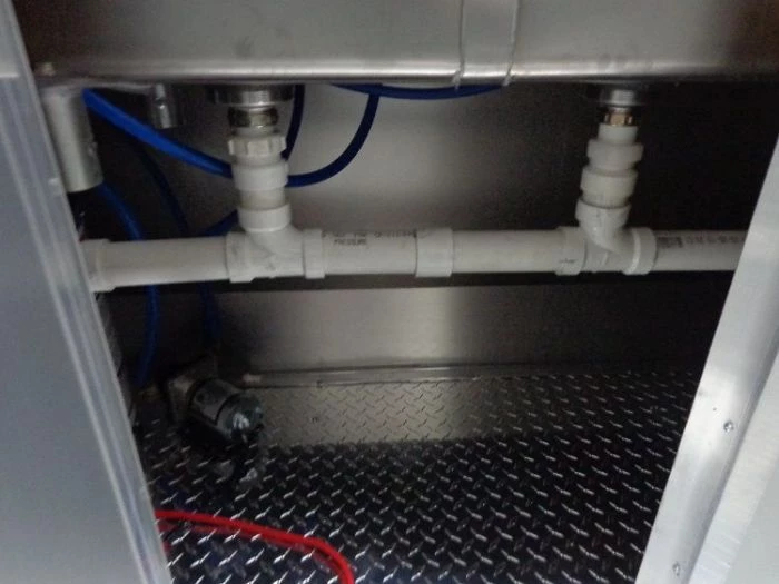 - sink package with 30 gal. fresh, 50 gal. waste, 6 gal. water heater (each bin 15″ x 15″ x 11″ d)