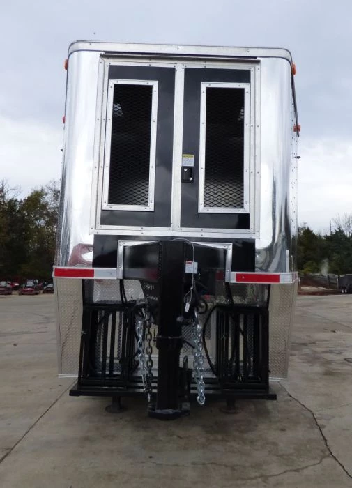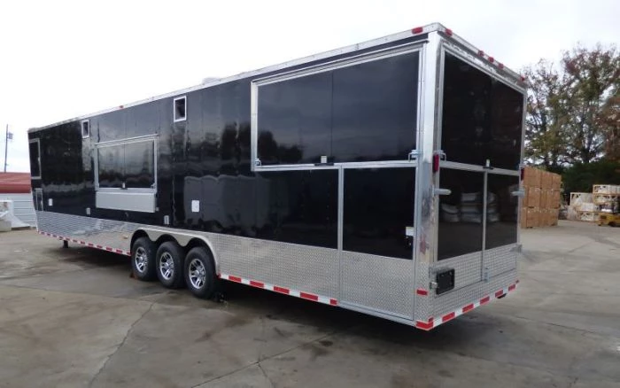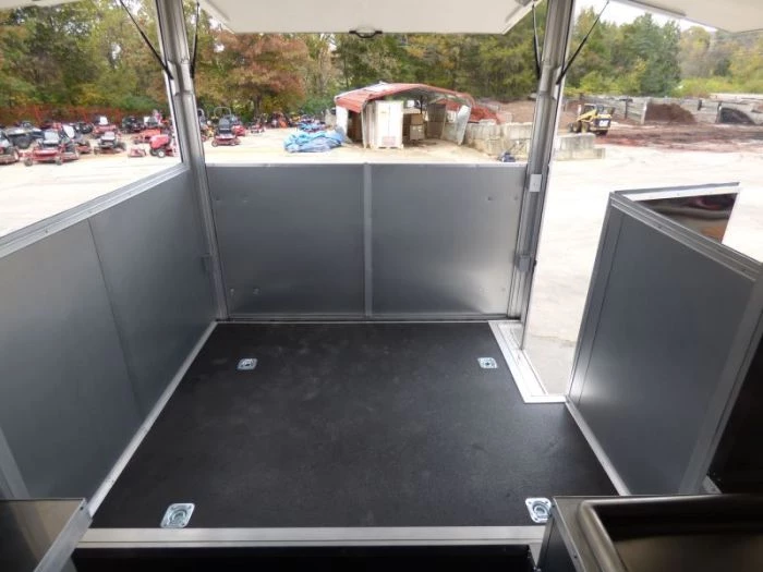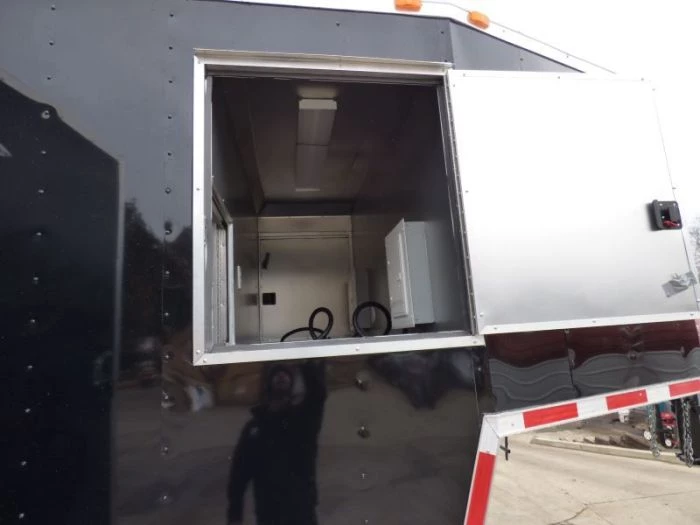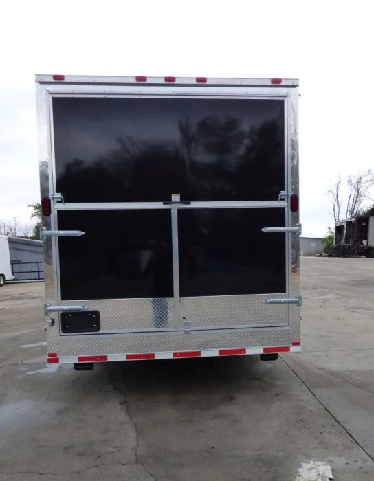 porch area with 36′ lower stationary wall with flip up door above and rear lower 36′ barn style doors with upper flipup