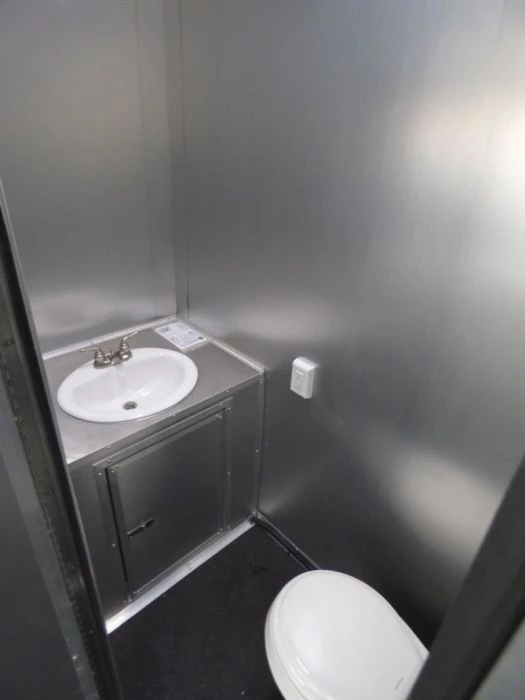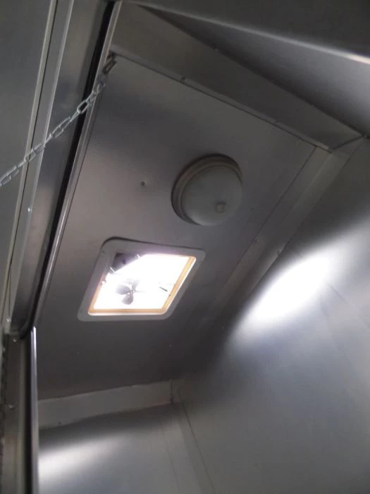 restroom with toilet, hand sink, light, roof vent and its own fresh and waste water suply