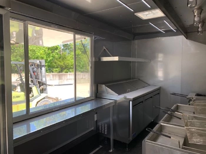 - (2) 48″ X 6′ concession windows with glass and screens and flip-up counter outside