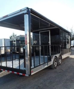 8.5′ x 24′ Black Porch Style Concession Food Trailer With Appliances