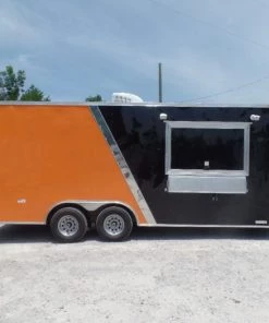 8.5′ x 20′ Black And Orange Food Catering Concession Trailer