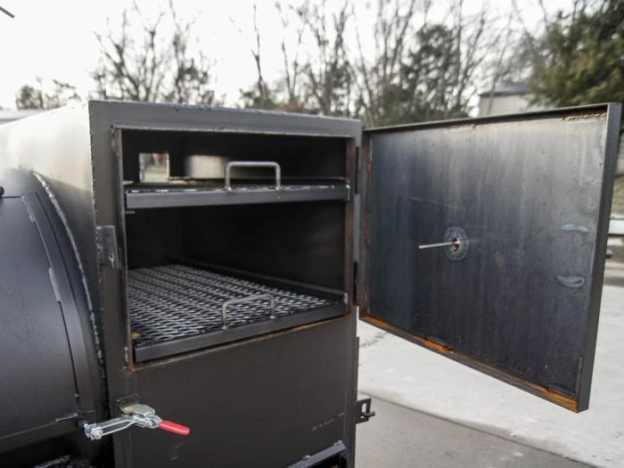 - Smoker also has adjustable smoke vent from fire box to smoker chamber